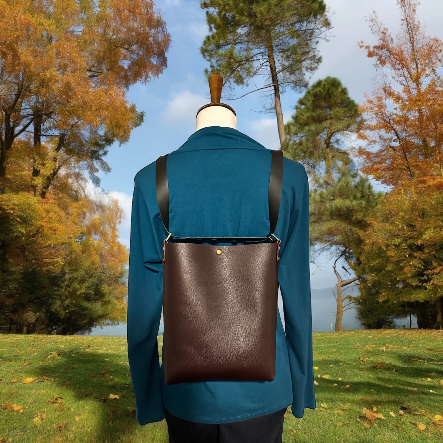 Experience the convenience of versatility with our dark brown convertible Tote/Backpack. Crafted with high-quality leather, easily switch from a tote to a backpack for any occasion. Effortlessly style and carry your essentials, all while staying chic and organized. A must-have for the modern and multi-functional individual!