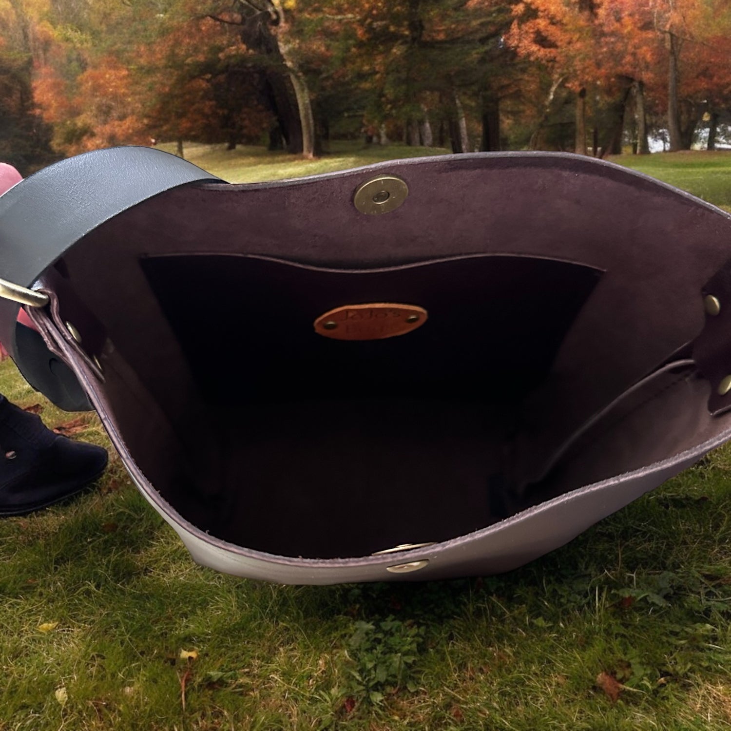 There is one strap that allows the bag to be used as a tote with a crossbody bag style strap. When you want the convenience of a backpack you just pull the straps so they create backpack styles. A magnetic snap helps keep the bag closed. Inside there is a 6.5” wide x 5.5 high slip pocket.