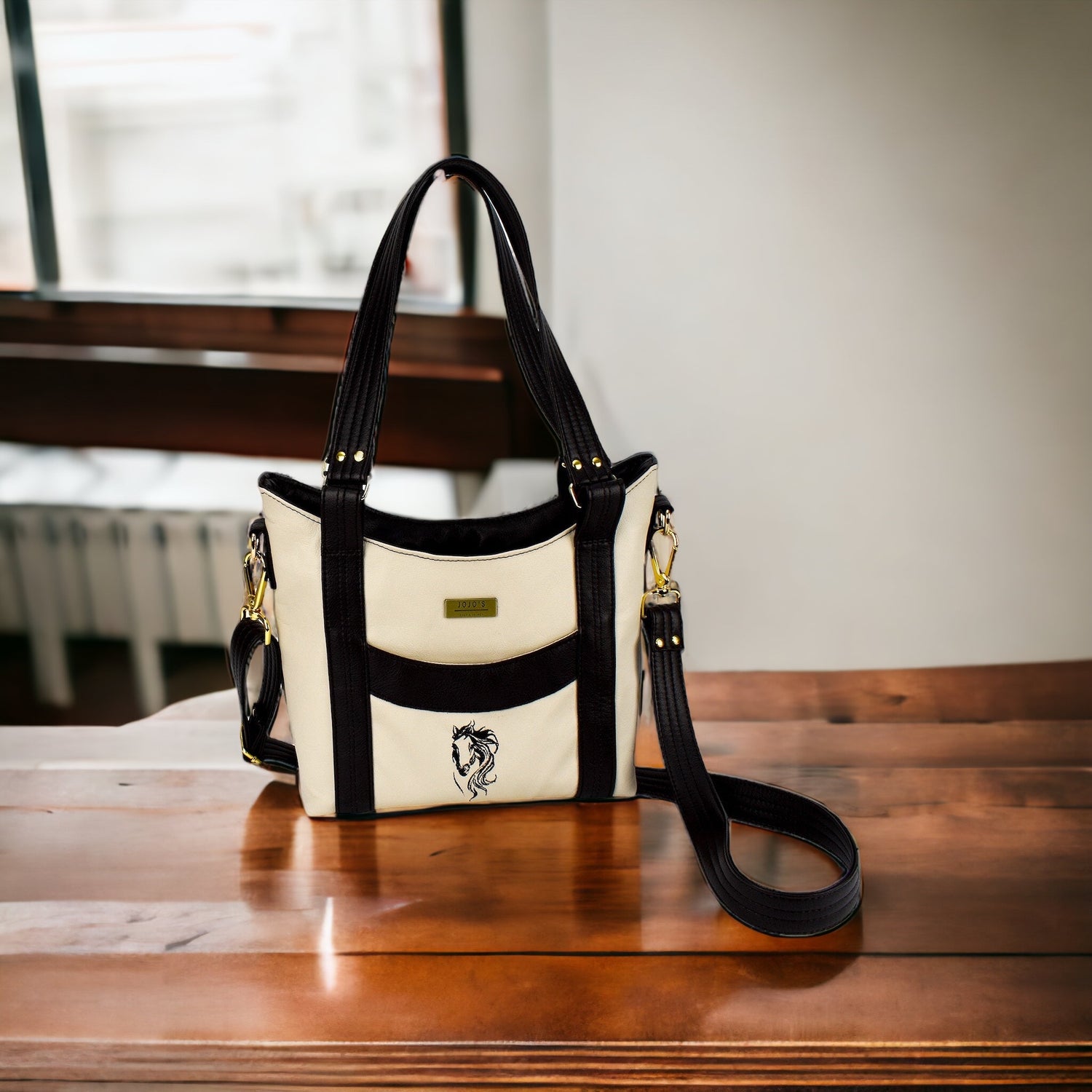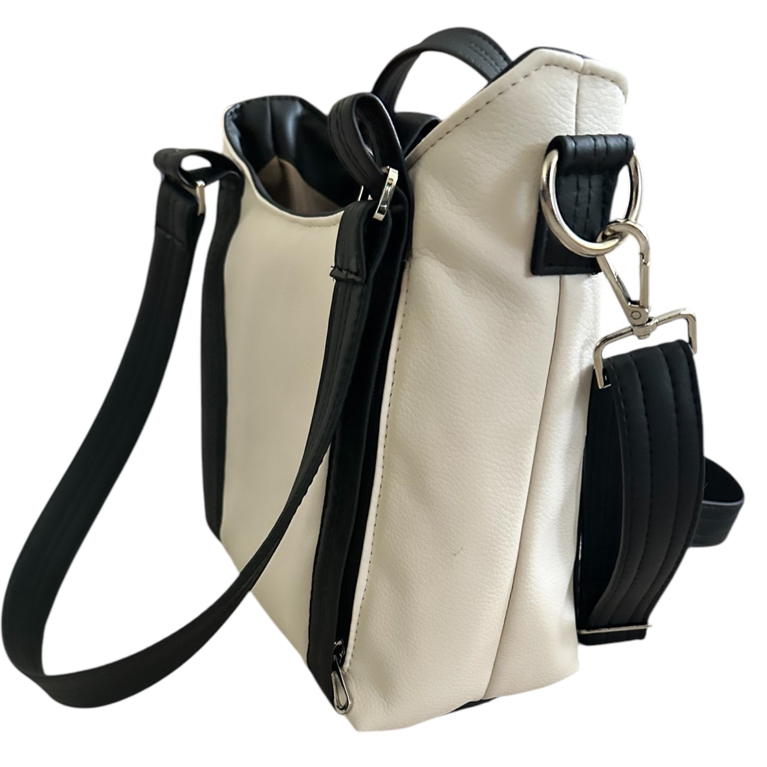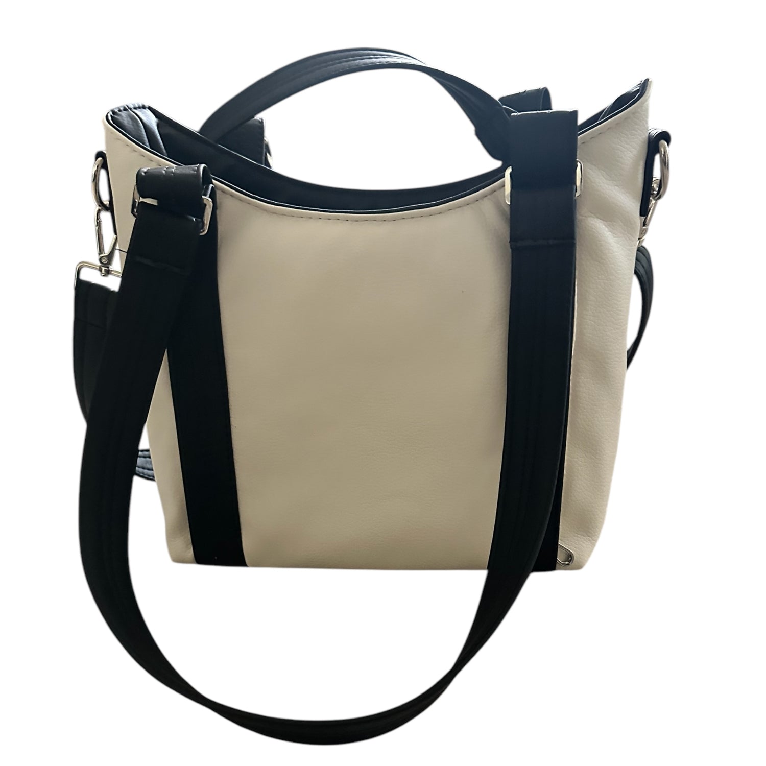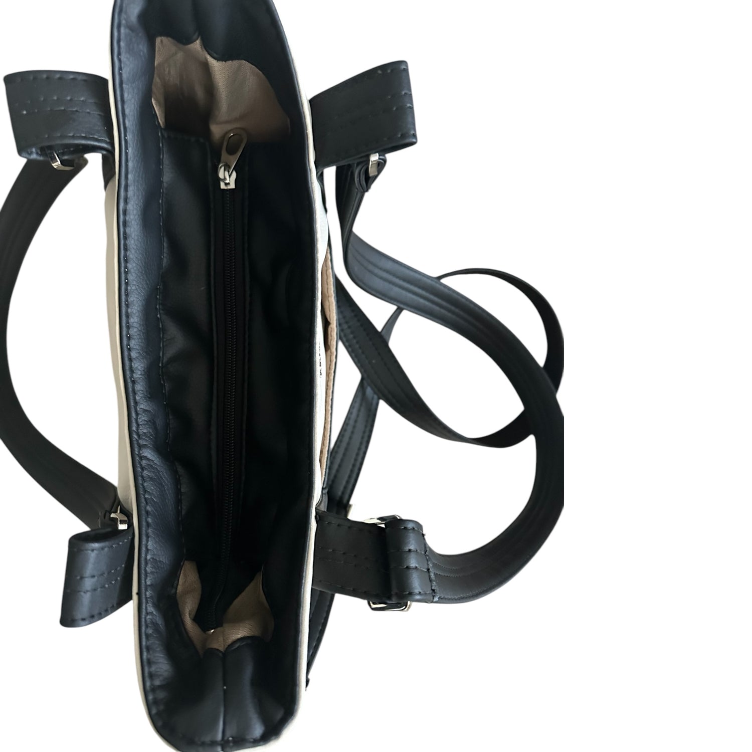 This beautiful full-sized purse is a wonderful addition to any women's collection of purses. It can be used as a general tote bag or as your main purse. It is designed to be a conceal carry purse, but the CC pocket can be used to hold a cell phone instead. It is made from quality vinyl and lined with a waterproof fabric so it can withstand that pesky water bottle. In the concealed carry pocket, there is the "hoop" side of hook and loop (AKA Velcro) to be used with a hook side holster (not included).