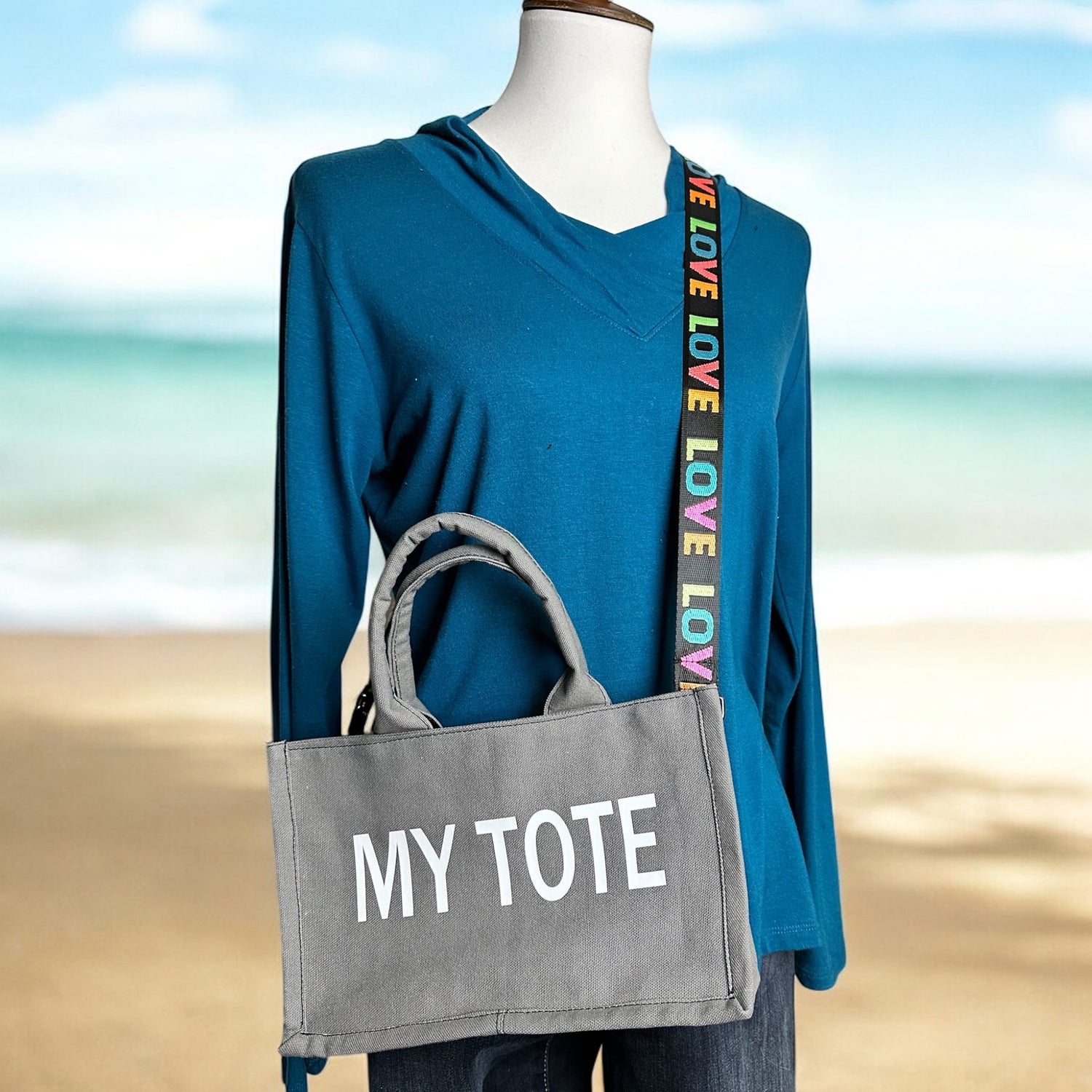 Get ready to mini-size your style with My Tote! This canvas handbag, complete with a handy crossbody strap, is perfect for carrying small essentials while on the go. Grab one before they're gone!