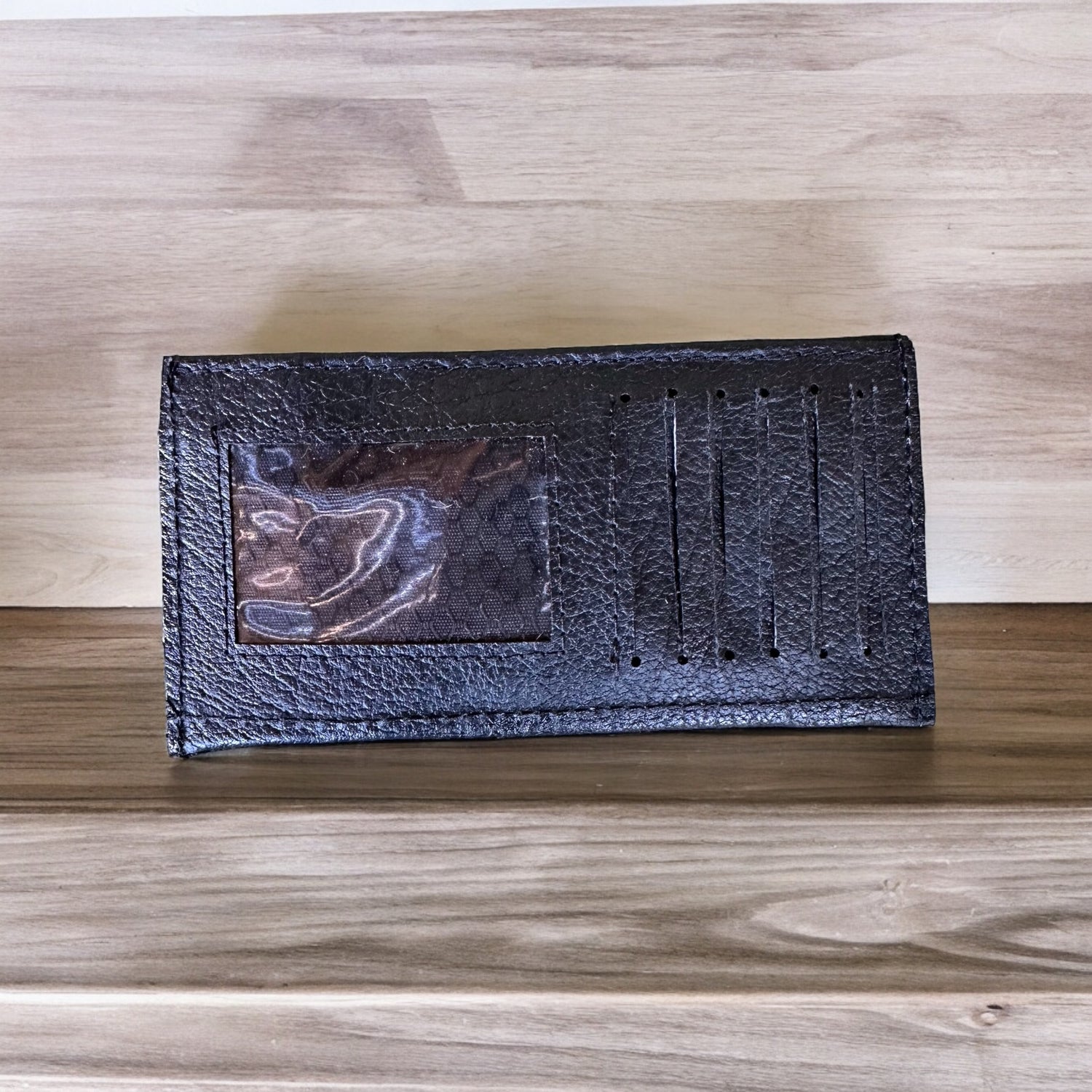 Indulge in luxury with our slim black leather wallet. Made from the finest leather, this wallet offers both style and functionality. Its slim design makes it perfect for keeping all your essentials organized without adding bulk. Elevate your everyday accessorizing with this exclusive piece.