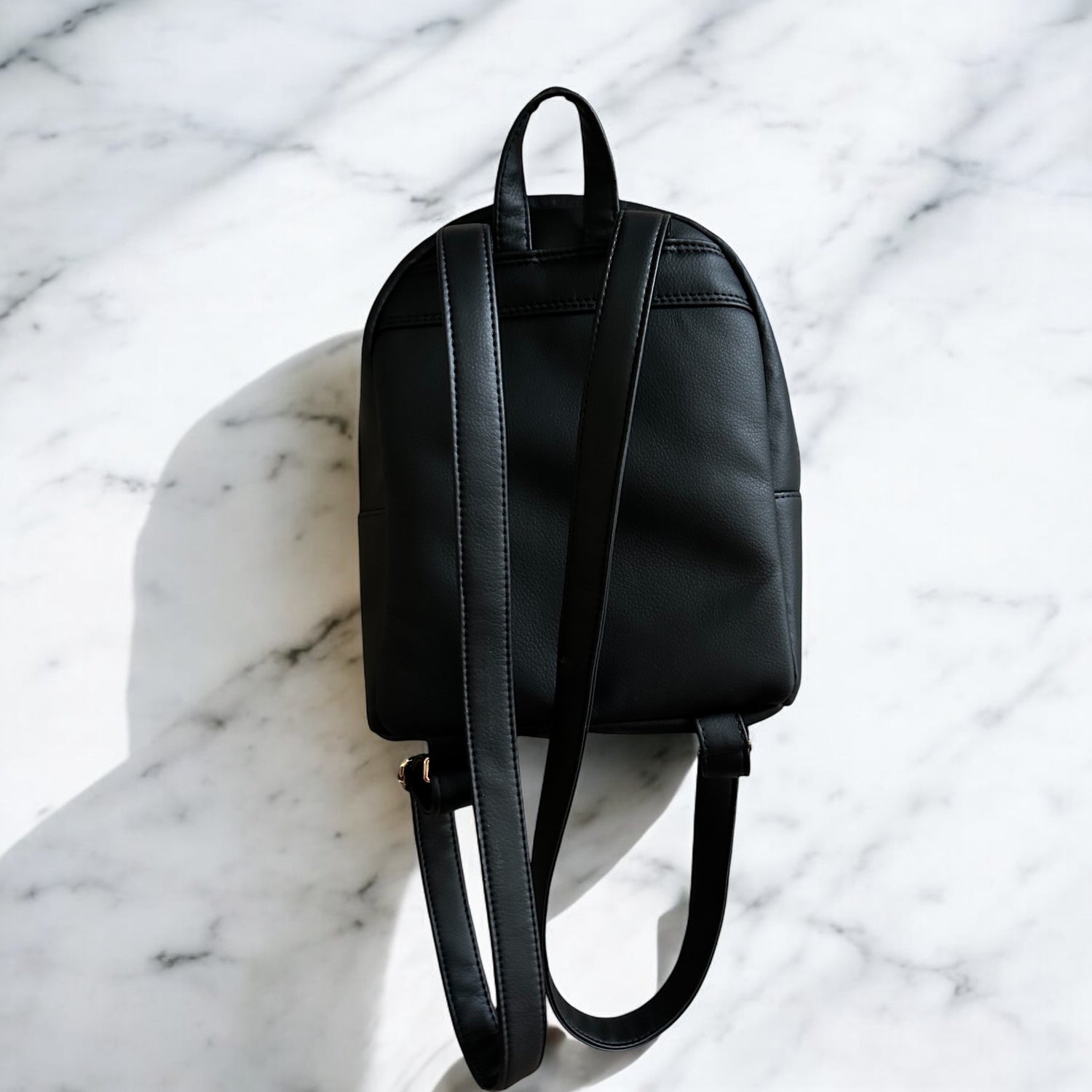 Made with high quality faux leather. Adjustable straps that can be used as a crossbody strap if you like. There is also an interior zipper pocket.